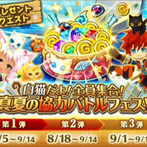 『白猫プロジェクト』- 「白猫だよ!全員集合!真夏の協力バトルフェス!」プレゼントクエスト第三弾追加!