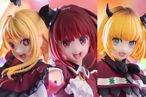【推しの子】有馬かな・ルビー・MEMちょのちょこのせフィギュアがプライズ化!ライブステージ衣装を着るアイドル活動中の3人を並べてちょこんと座らせよう!【オンクレ】