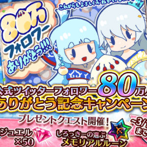 『白猫プロジェクト』-「公式ツイッターフォロワー80万人ありがとう記念キャンペーン」実施!呪弓イベントの復刻やプレゼントクエストが開催!