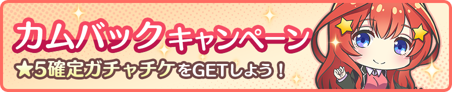 TVアニメ「五等分の花嫁∬」の放送開始を記念して、ログインボーナス、ガチャなど、さまざまなイベントやキャンペーンが実施されています。