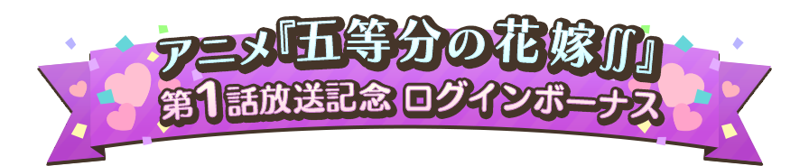”アニメ「五等分の花嫁∬」第1話 放送記念ログインボーナス”実施中!