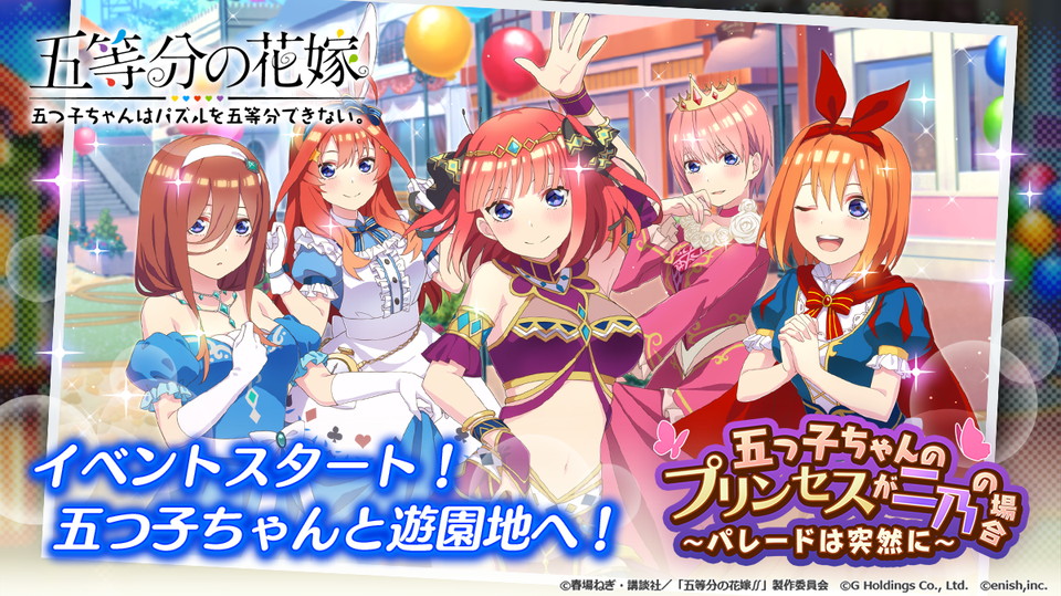 『五等分の花嫁 五つ子ちゃんはパズルを五等分できない。(ごとぱず)』にて、本日2021年3月1日(月)11:00より、イベント「五つ子ちゃんのプリンセスが二乃の場合 ~パレードは突然に~」が開催されました。