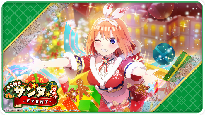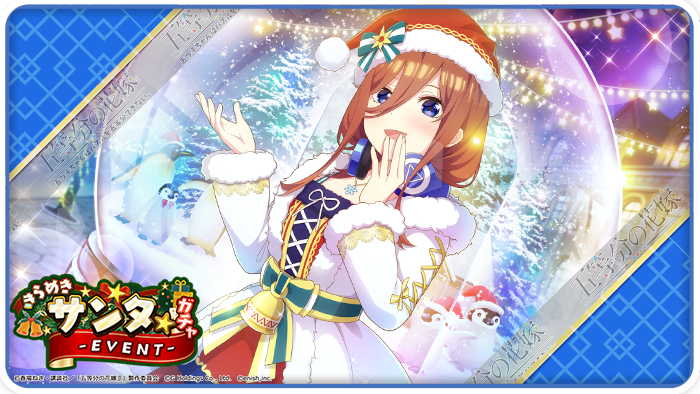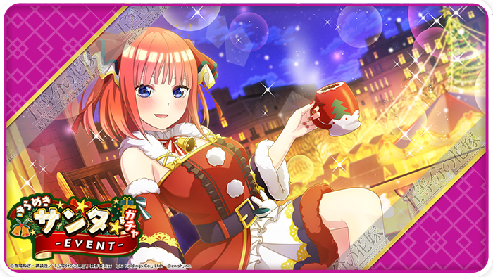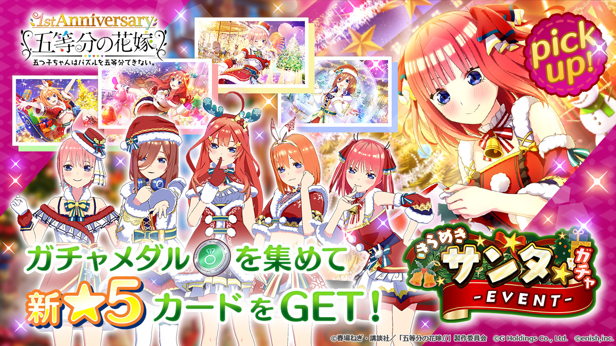 『五等分の花嫁 五つ子ちゃんはパズルを五等分できない。(ごとぱず)』にて、2021年12月4日(土)11:00より、新イベント「五つ子サンタとクリスマスデート ~私の彼氏になってほしいの!×5~」が開催予定です。