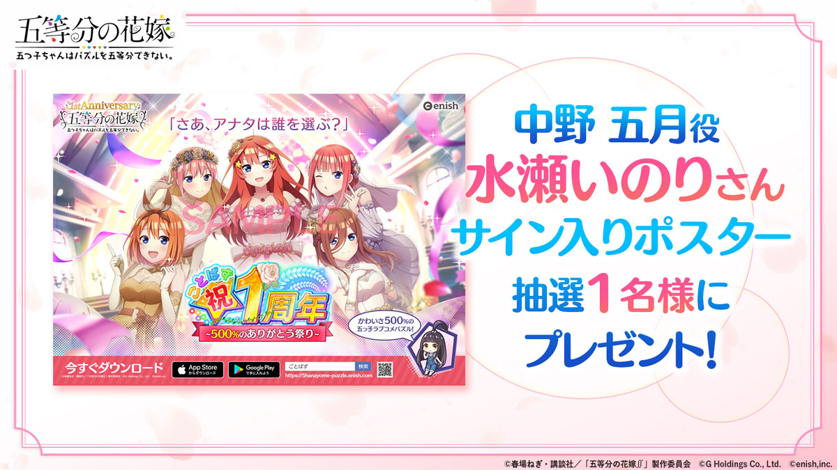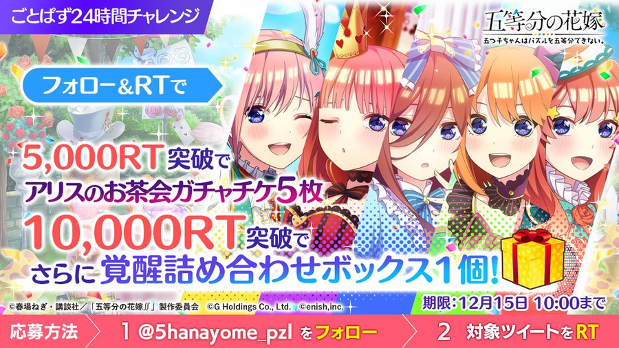 — 『五等分の花嫁 五つ子ちゃんはパズルを五等分できない。』【ごとぱず】《運営》 (@5hanayome_pzl) December 14, 2021