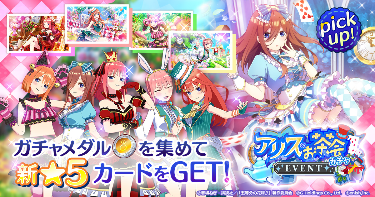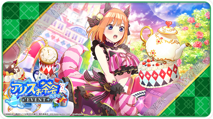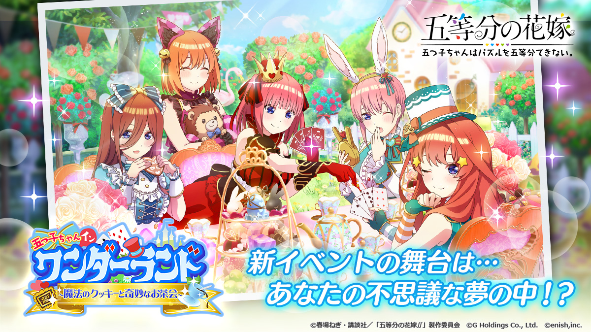 『五等分の花嫁 五つ子ちゃんはパズルを五等分できない。(ごとぱず)』にて、2021年12月16日(木)11:00より、新イベント「五つ子ちゃん イン ワンダーランド ~魔法のクッキーと奇妙なお茶会~」が開催予定です。