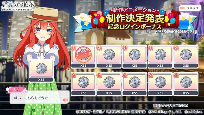 引き続き、「新作アニメーション制作決定発表記念ログインボーナス」が実施中です。