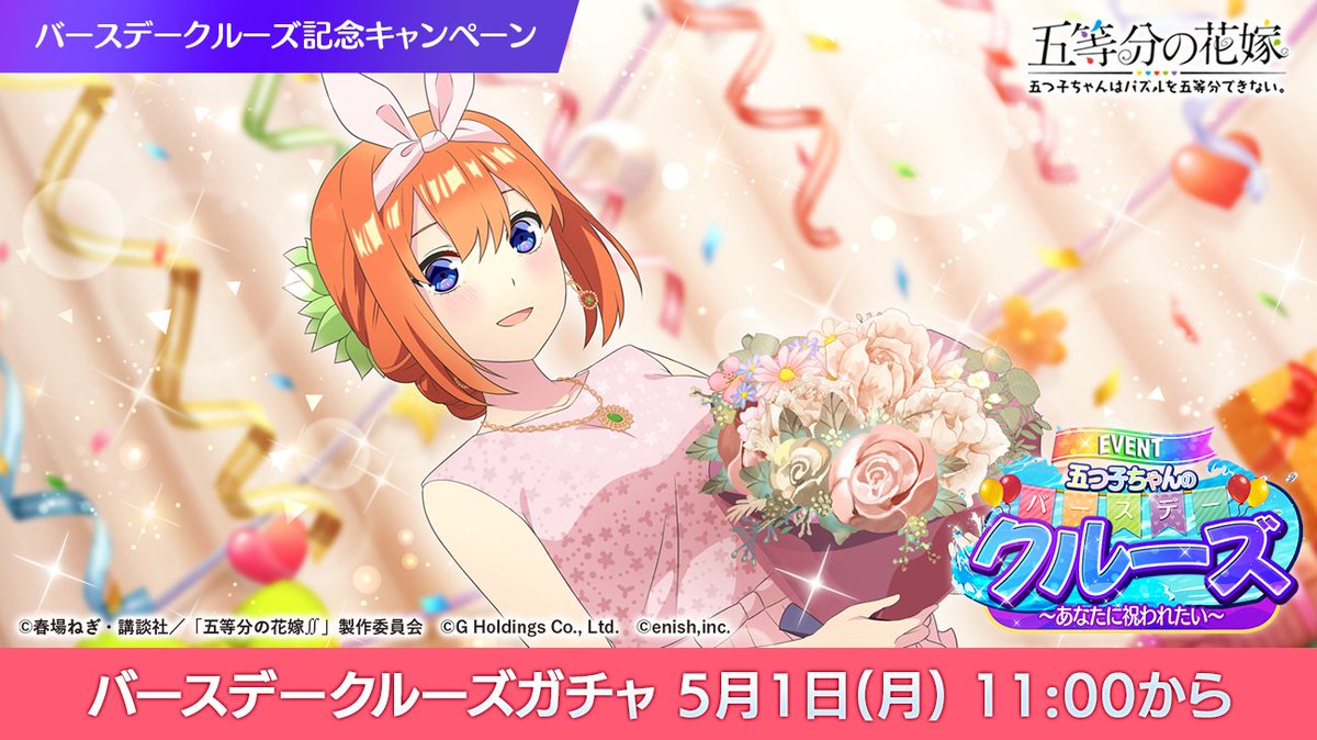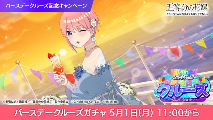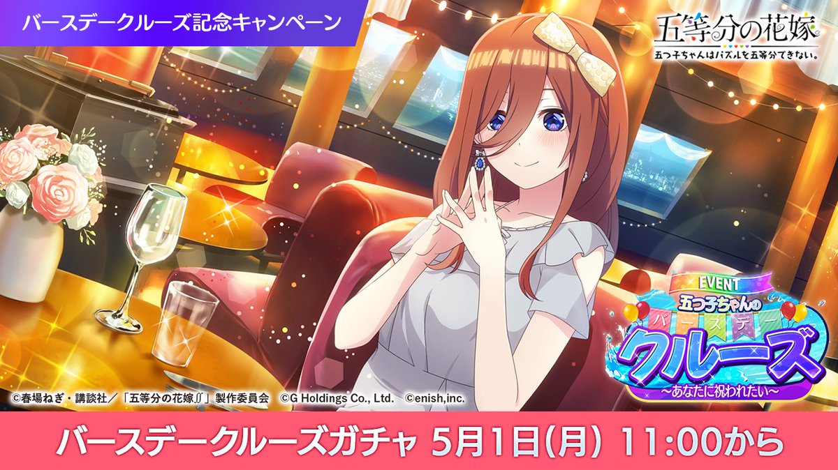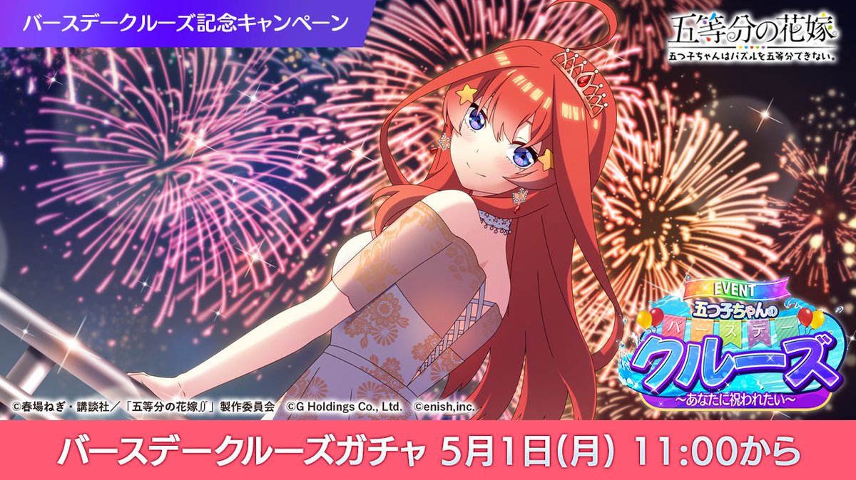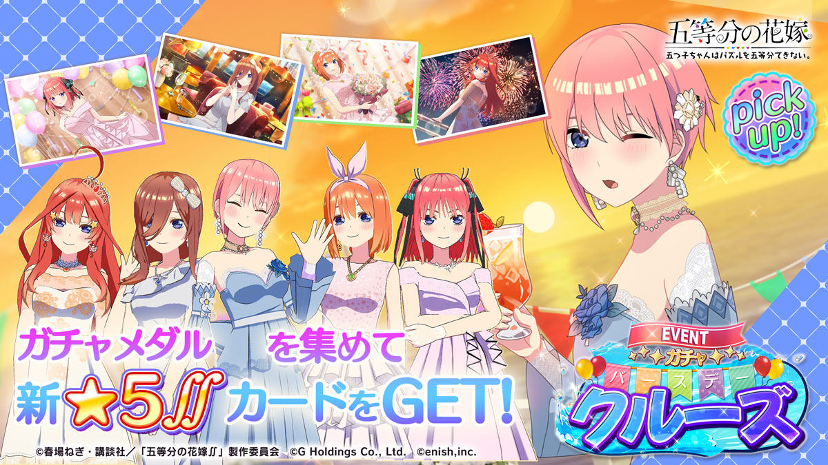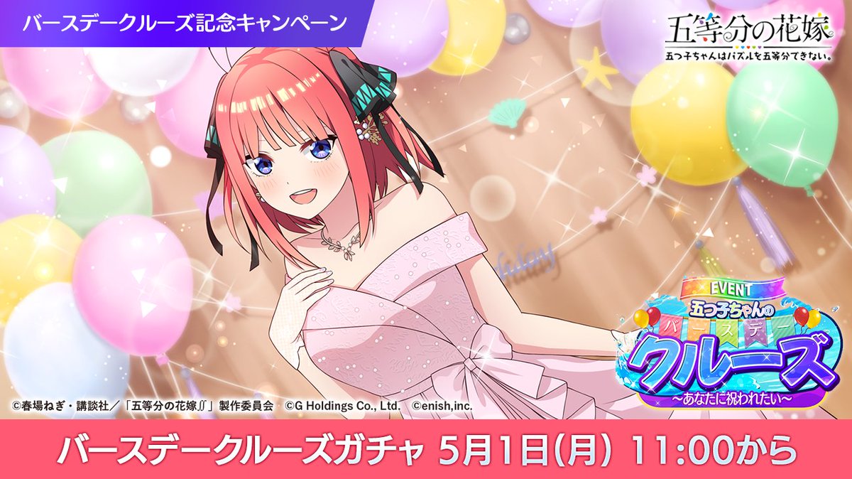『五等分の花嫁 五つ子ちゃんはパズルを五等分できない。(ごとぱず)』にて、2023年5月5日(金)11:00より、新イベント「五つ子ちゃんのバースデークルーズ~あなたに祝われたい~」が開催されます。