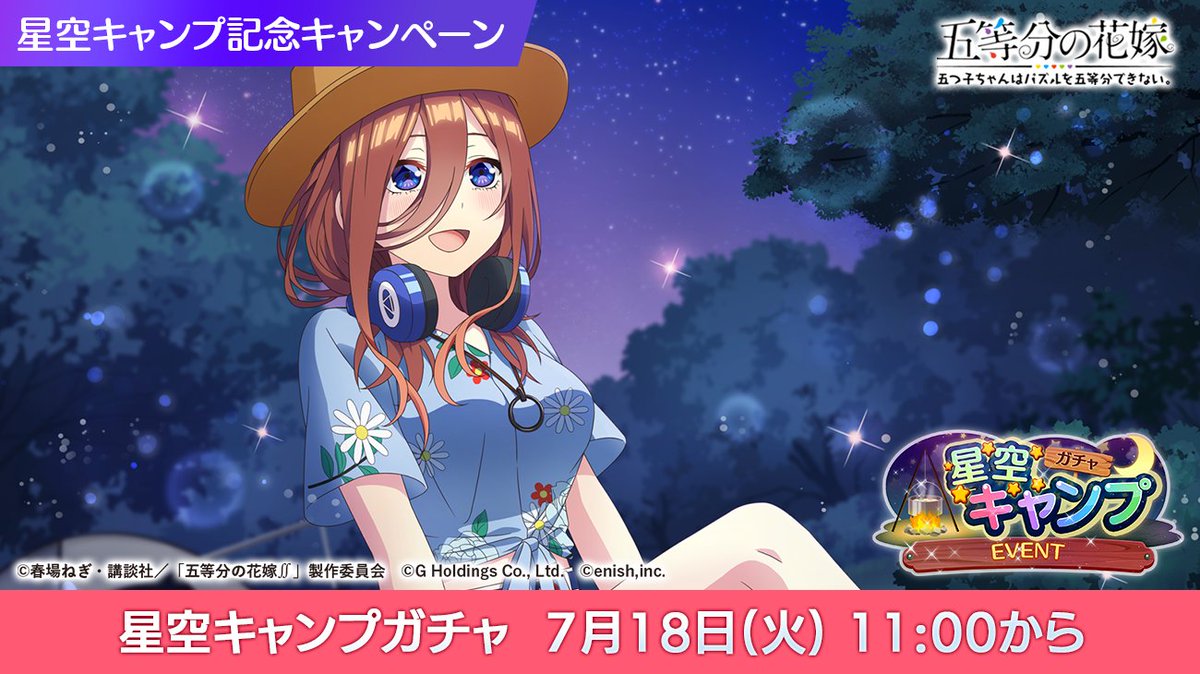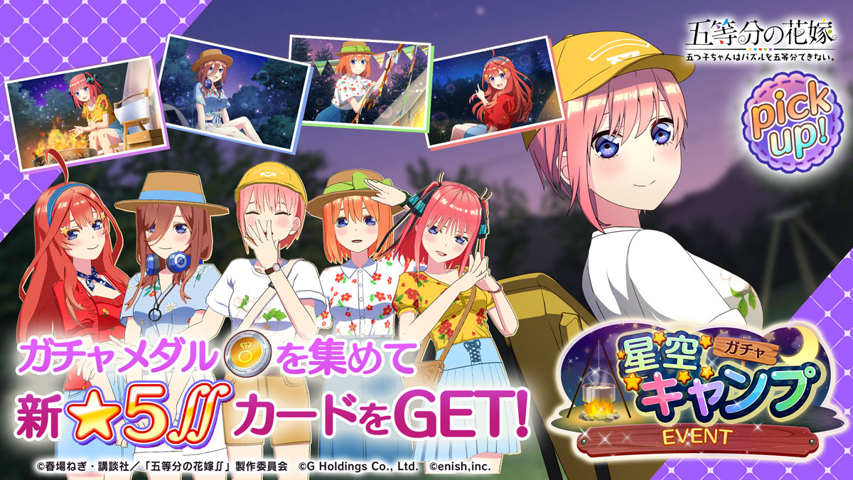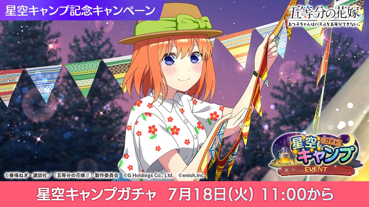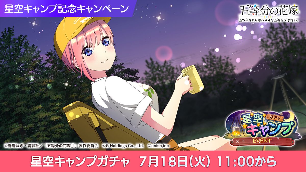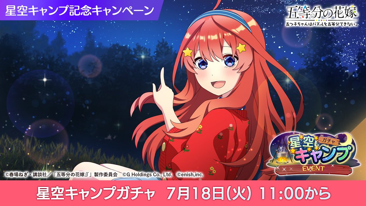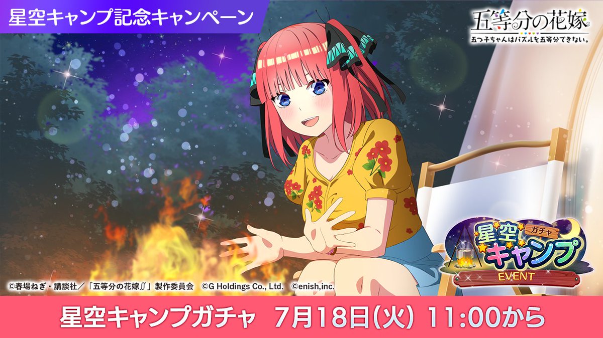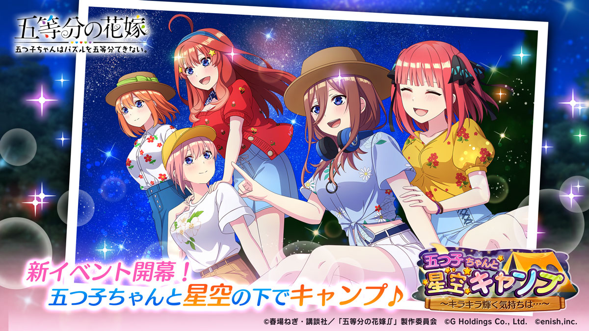 『五等分の花嫁 五つ子ちゃんはパズルを五等分できない。(ごとぱず)』にて、2023年7月21日(金)11:00より、新イベント「五つ子ちゃんと星空キャンプ~キラキラ輝く気持ちは…~」が開催されます。