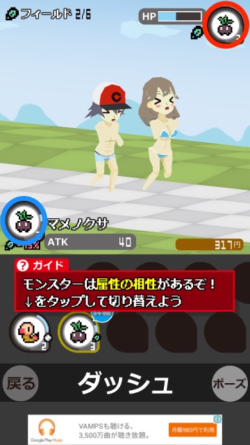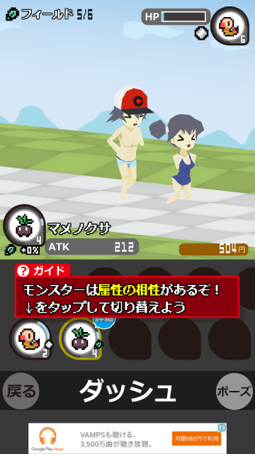 制限時間も短いので、モンスターを強化するしかありません。バッジでレベル上限を開放し、ひたすら周回を繰り返します!準備ができたら相手モンスターとの相性やレベルに注意しながら「ダッシュ」を連打しガンガン攻めていきましょう!