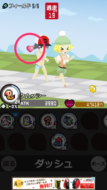 とにかくダッシュして、背後からトレーナーにアタック!お金、モンスター、そして女の子のハートもゲットだぜ!