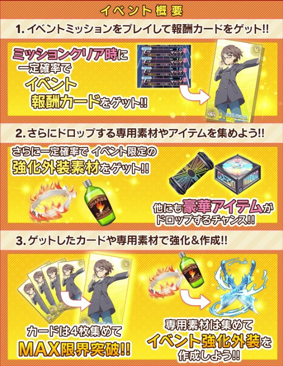 さらに、ミッションクリア時にドロップする、イベント専用強化外装素材を集めて強化外装を作成していきましょう。