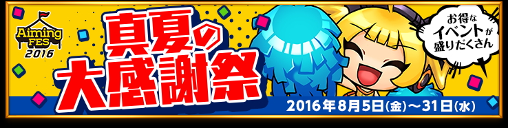 Aimingが開発・運営を行うゲームタイトルと関連タイトル『ログレス』の11タイトルが参加し、大感謝祭が開催されます。