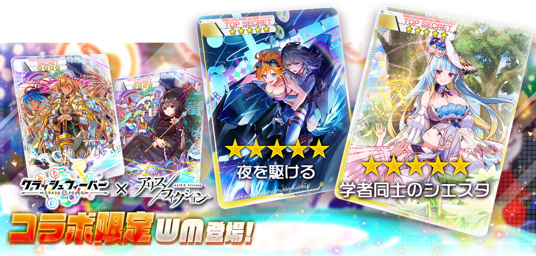 『アリスフィクション(アリフィ)』にて、本日2023年2月28日(火)12:00より、ブッ壊し!ポップ☆RPG「クラッシュフィーバー(クラフィ)」とのコラボが開催されました。