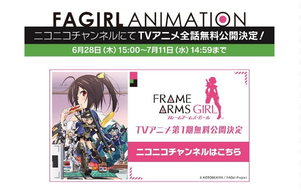 ニコニコ動画の「フレームアームズ・ガール」チャンネルにて、TVアニメ「FAガール」が無料で限定公開されます。
