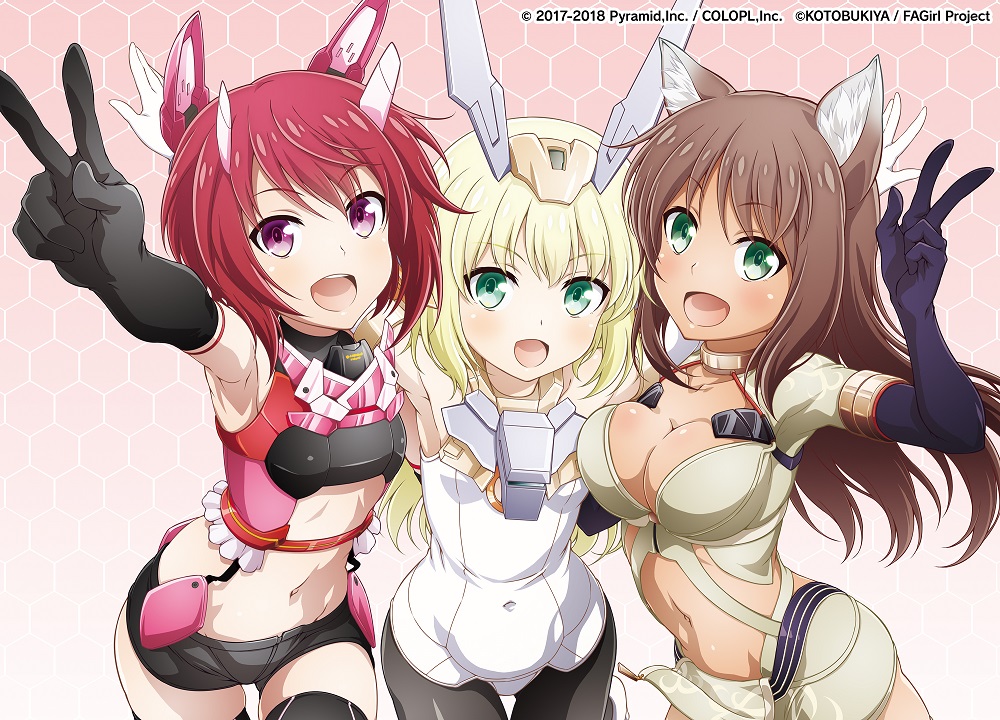 2018年6月29日(金)より、コラボCMが放送予定です。本CMでは、TVアニメ「FAガール」のアニメシーンに『アリス・ギア・アイギス』の夜露が登場し、各作品のキャラのやりとりが見れるほか、TVアニメオープニング・テーマ「Tiny Tiny」や、本CMのために録り下ろした登場キャラの限定ボイスが聞けます。