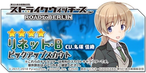 本ガチャでは、「★4/宮藤 芳佳」や「★4/リネット・B」が単独ピックアップで登場!