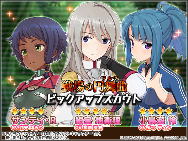それに伴い、新イベントで活躍する3名のアクトレスたちがピックアップされた「戦場の円舞曲」ピックアップスカウトも開催中です。