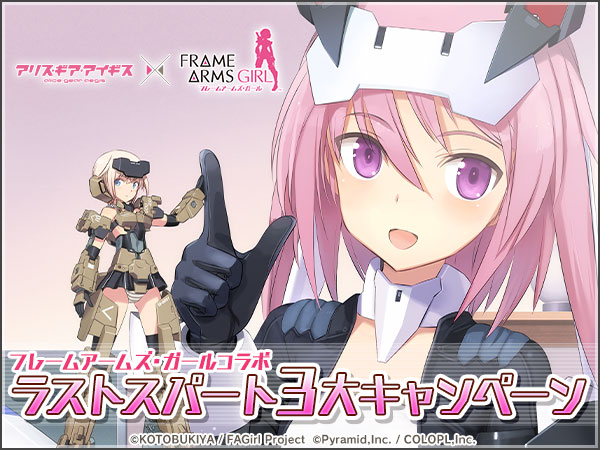『アリス・ギア・アイギス(アリスギア)』にて、本日2020年6月26日(金)15:00より、アニメ「フレームアームズ・ガール(FAガール)」とのコラボの「ラストスパート3大キャンペーン」が開催されました。