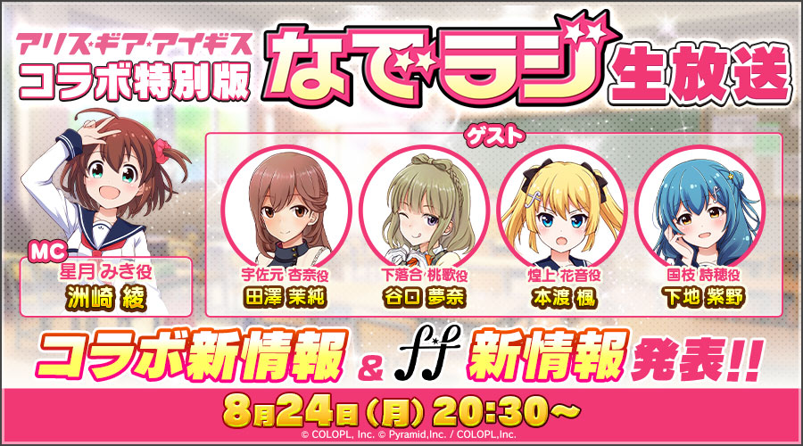 『アリス・ギア・アイギス(アリスギア)』にて、2020年8月24日(月)20:30より、「バトルガール ハイスクール(バトガ)」コラボ特別版「なでラジ」第3回生放送が配信されます。