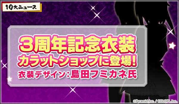 1月22日(金)15:00より、カラットショップに島田フミカネ氏が衣装デザインを手掛けた3周年記念衣装が新登場します。