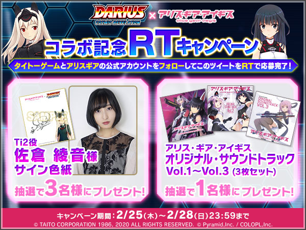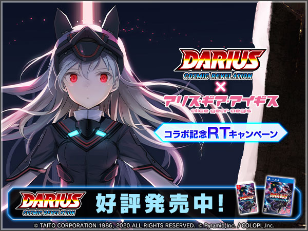 『アリス・ギア・アイギス』と『ダライアス コズミックリベレーション』コラボを記念したtwitterリツイートキャンペーンが開催中です。