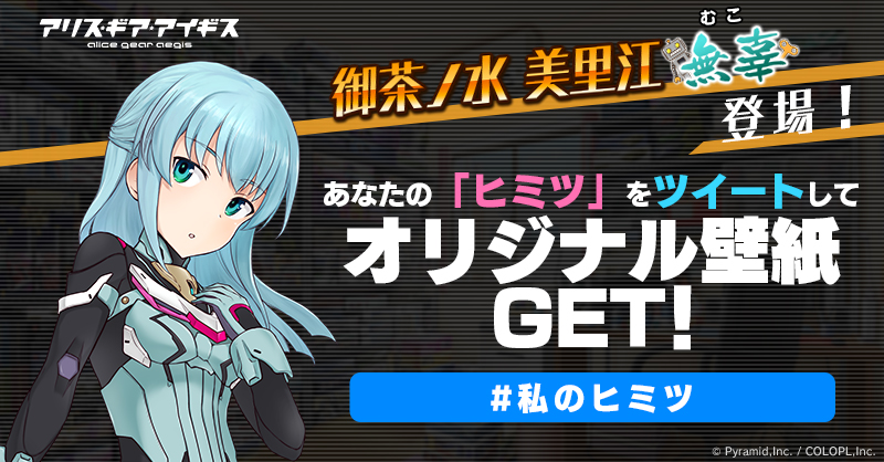 本キャンペーンでは、対象ツイートのハッシュタグボタン「#私のヒミツ」からツイートを投稿すると、「御茶ノ水 美里江【無辜】」のオリジナル壁紙を獲得できます。