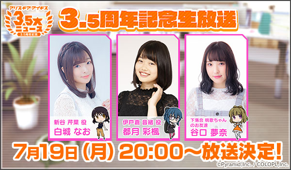 7月19日(月)20:00より、「3.5周年記念生放送」が放送予定です。
