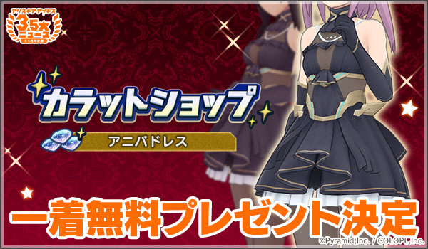 7月21日(水)15:00より、2周年記念コスチューム「アニバドレス」が新たに登場したアクトレス分も追加され、カラットショップに再登場します。