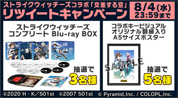 ストライクウィッチーズコラボ復刻を記念し、「交差する空」RTキャンペーン開催!@colopl_alice をフォロー&RTしてくれた方の中から抽選で『ストライクウィッチーズ コンプリート Blu-ray BOX』など豪華賞品をプレゼント🎁#アリスギア #w_witch #アリスギアウィッチーズコラボ pic.twitter.com/eKmk5RfqMD