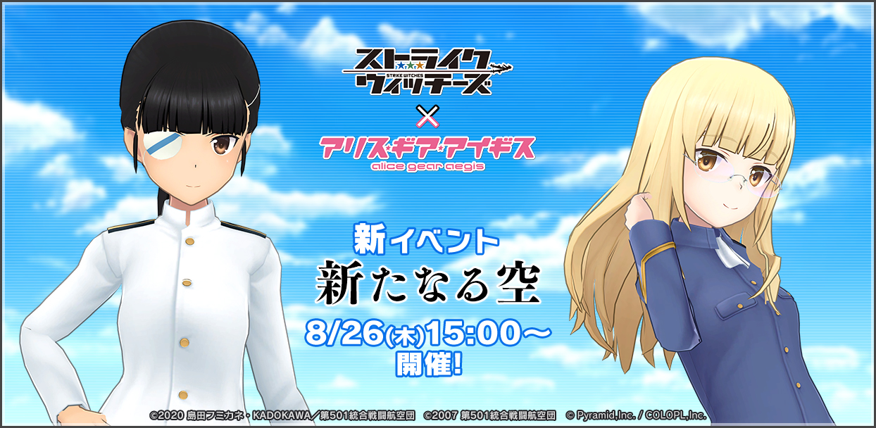 『アリス・ギア・アイギス(アリスギア)』にて、2021年8月26日(木)15:00より、TVアニメ「ストライクウィッチーズ」との新コラボイベント「新たなる空」が開催されます。
