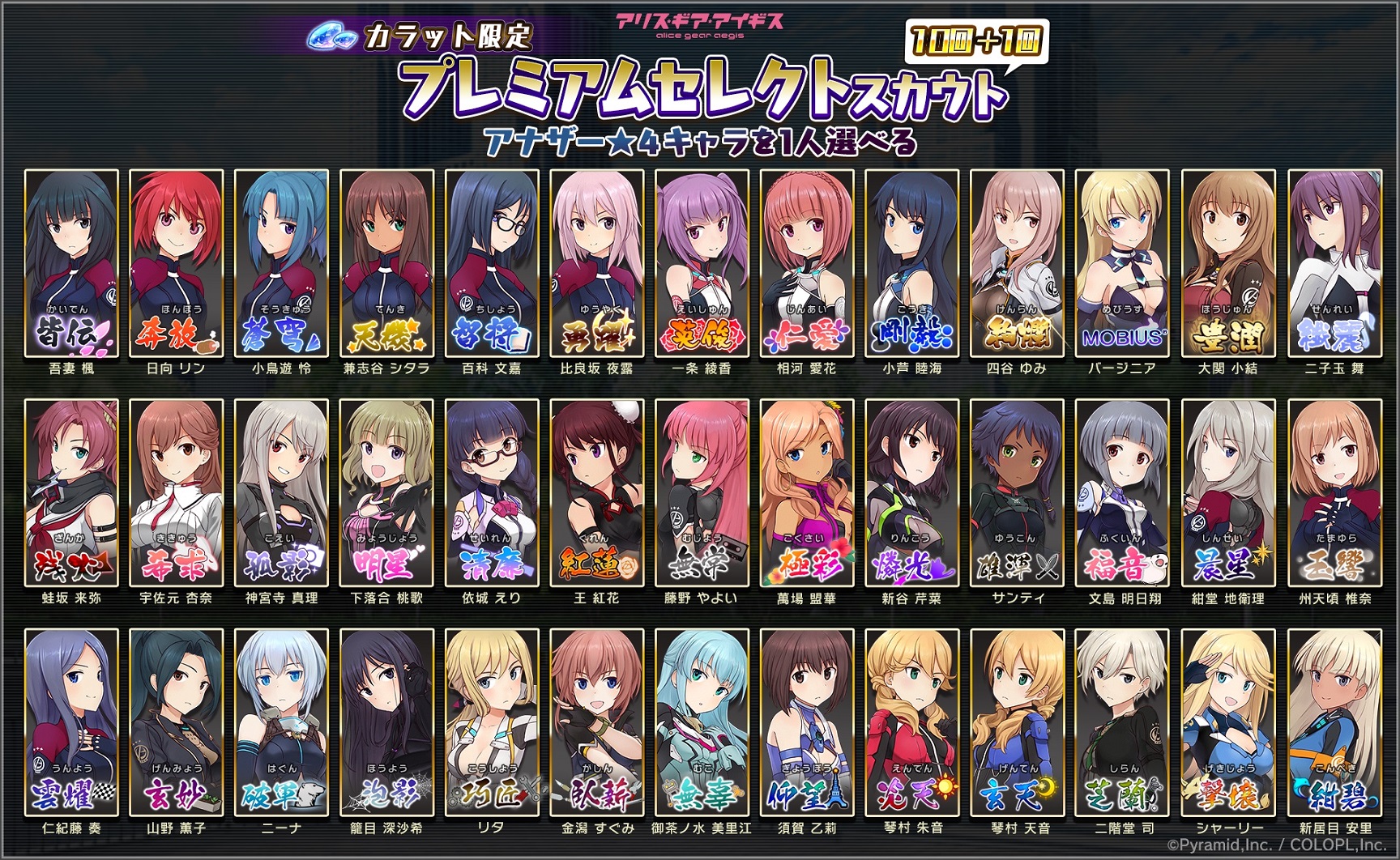 期間中、選択したアナザー★4キャラ1人が確定する「10回+1回」スカウトをカラットで引くことができます。