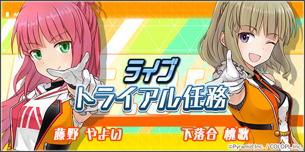 期間中、ファクター★4キャラクター「藤野 やよい【ライブ】」「下落合 桃歌【ライブ】」を使用して任務をプレイでき、その性能を体験できます。