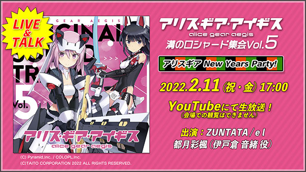 本イベントは、「アリス・ギア・アイギス オリジナルサウンドトラック Vol.5」の発売を記念したオンラインイベントです。