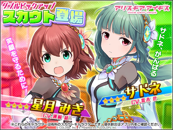本日4月7日(木)15:00より、対象キャラのスカウト率がアップする「ダブルピックアップスカウト」が順次開催されます。