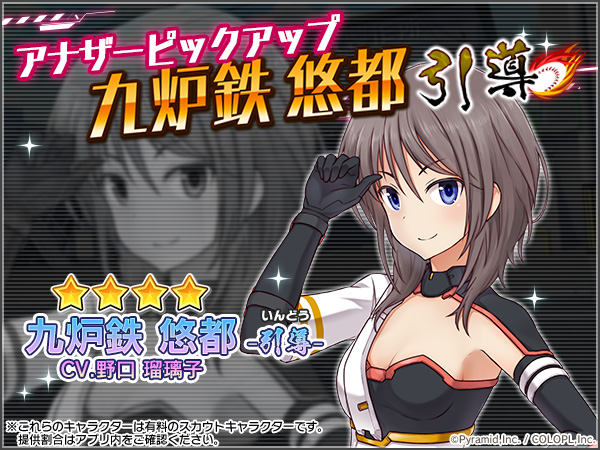 本スカウトでは、新アナザー★4キャラクター「九炉鉄 悠都【引導】」のスカウト率がアップしています。