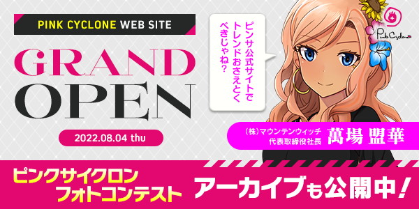 「萬場 盟華(CV:森永千才)」が経営するブランド「ピンクサイクロン」をイメージした特設サイトで「ピンクサイクロンフォトコンテスト」のアーカイブが公開されました。