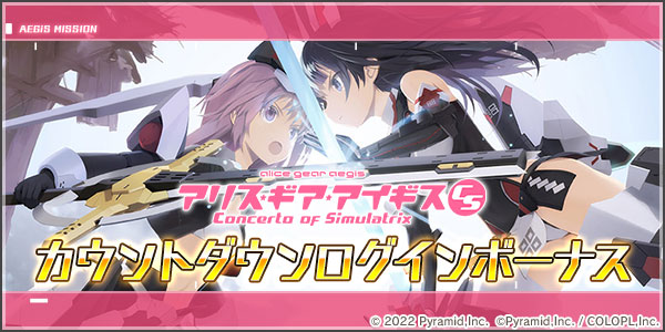 9月5日(月)15:00より、「アリス・ギア・アイギスCS ~コンチェルト オブ シミュラトリックス~ 発売カウントダウンログインボーナス」が実施中です。