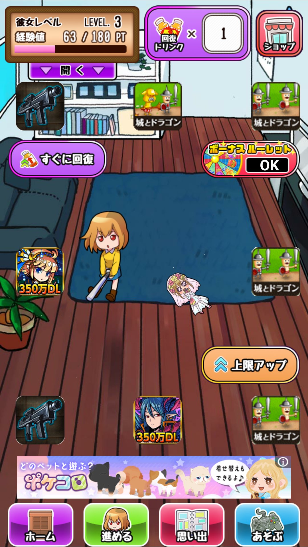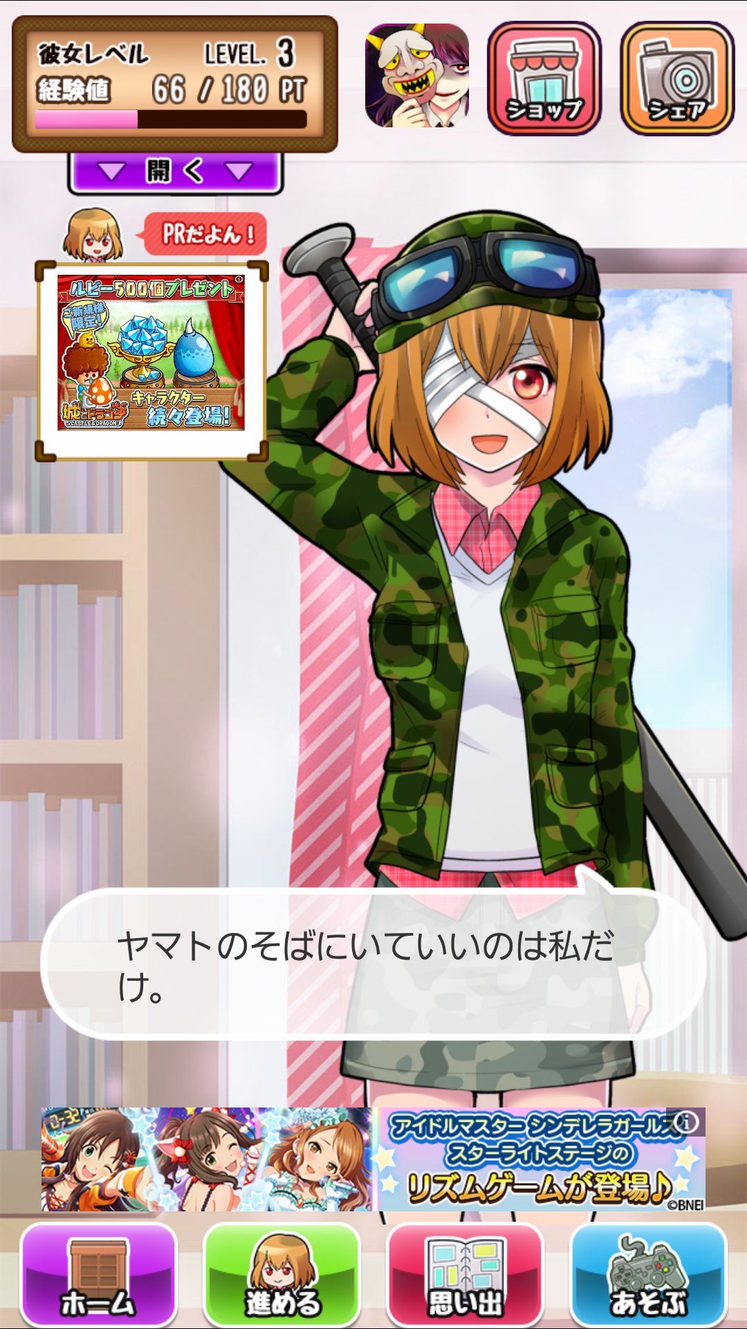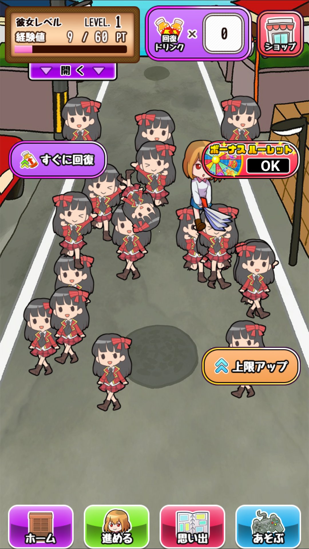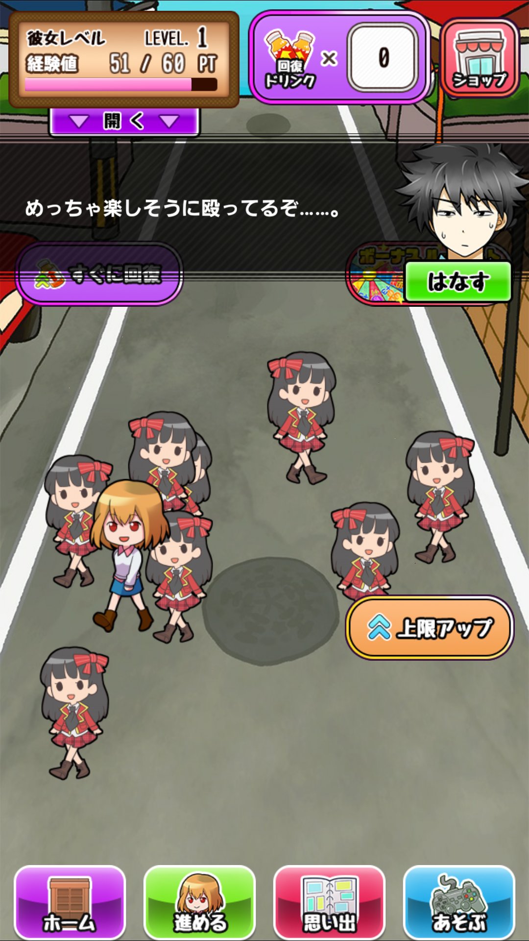 ゲーム内には、ミキちゃんと、ヤマト君に言い寄る女子がたくさんいます。この女子たちをタップすると、ミキちゃんが持ってる武器でブッ飛ばします。