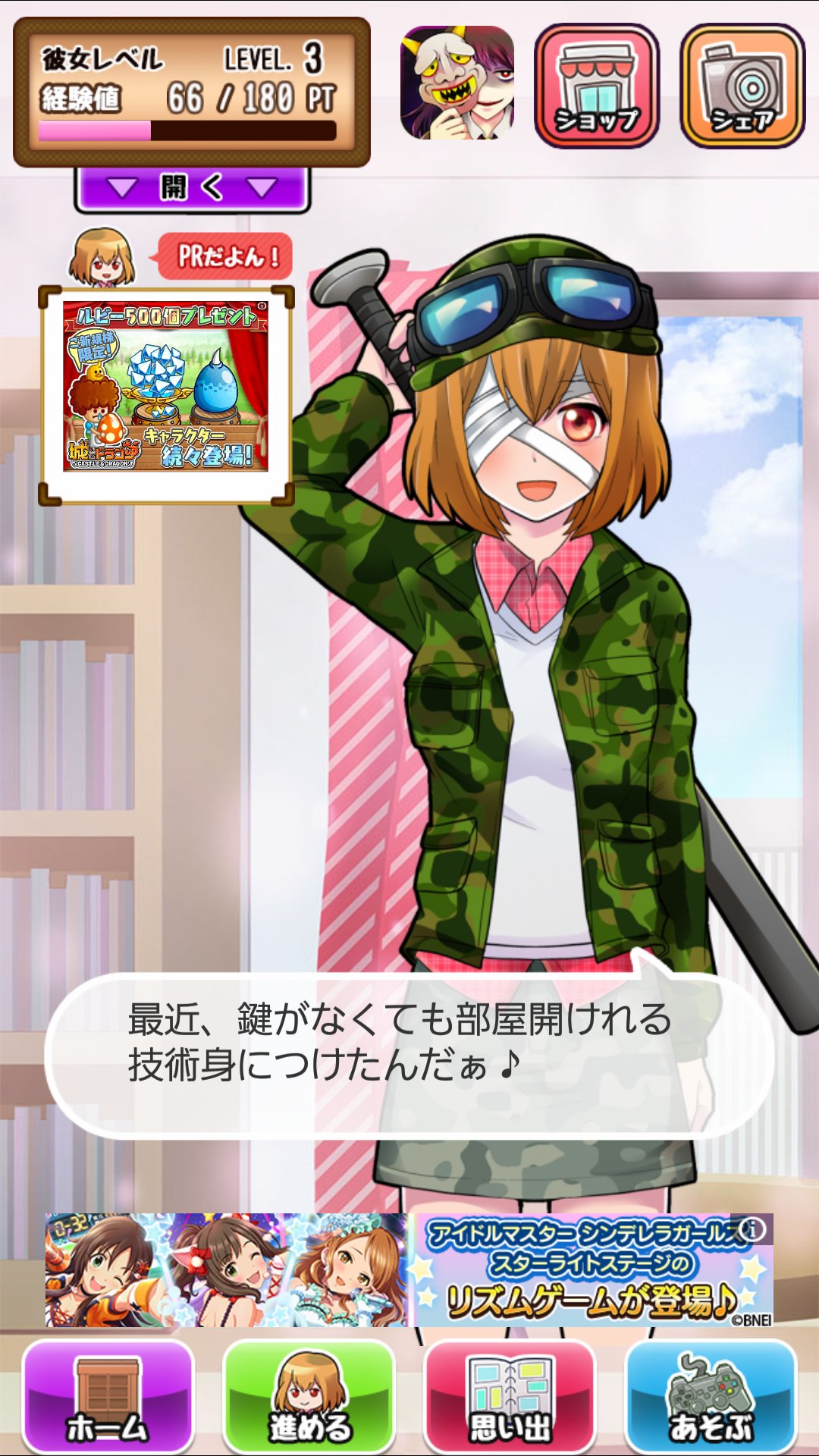 プレイ画面とは別にホーム画面もあり、ここでミキちゃんをタップするとおしゃべりも可能!