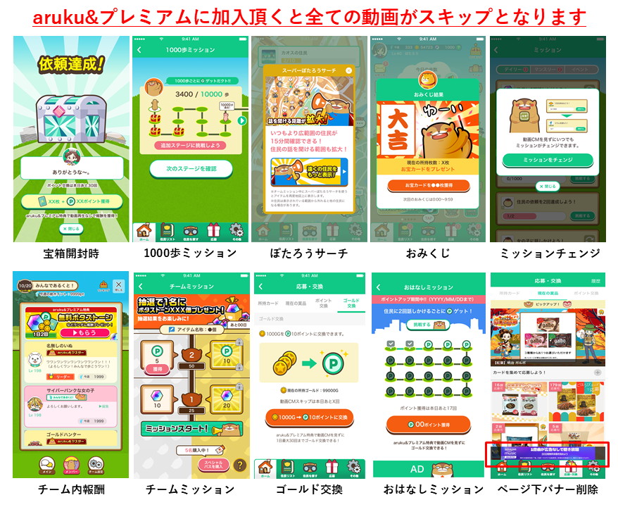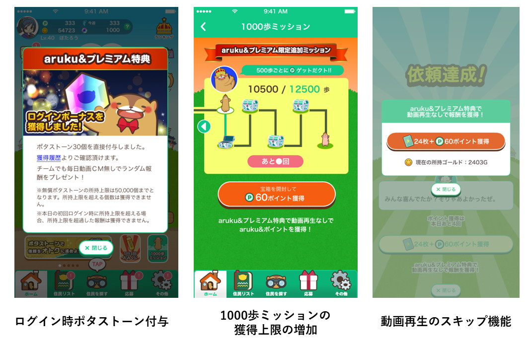 プレミアム会員の方は、アプリ内の動画広告がすべて非表示になります。動画広告が非表示になることで、住民依頼達成やポイントの獲得がより快適に楽しめるようになります。