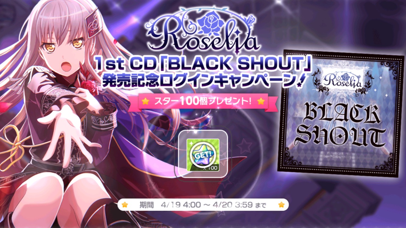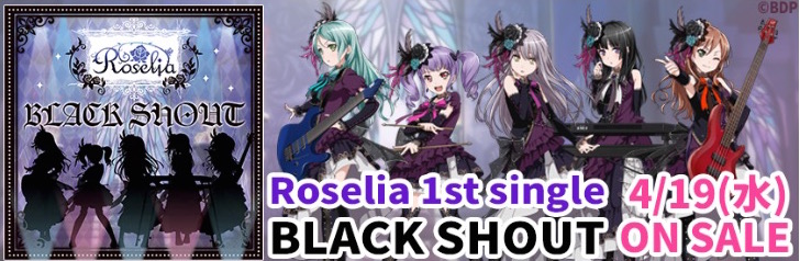 『バンドリ!ガールズバンドパーティ!(ガルパ)』にて、4月19日(水)より、Roseliaの1stシングル「BLACK SHOUT」が発売開始!
