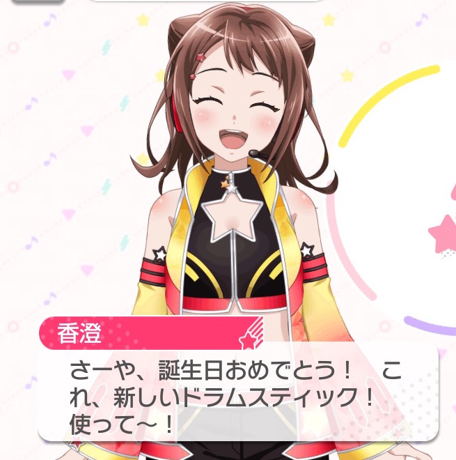 『バンドリ!ガールズバンドパーティ!(ガルパ)』にて、Poppin' Party(ポピパ)に所属する、5月19日が誕生日の「山吹沙綾(CV:大橋彩香)」ちゃんをお祝い中です!
