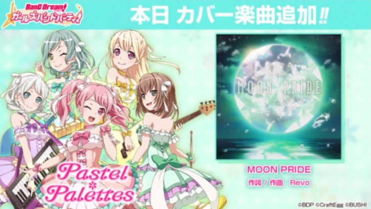 新カバー楽曲として、Pastel*Palettes(パスパレ)の丸山彩(CV:前島亜美)による「MOON PRIDE」が追加されました。