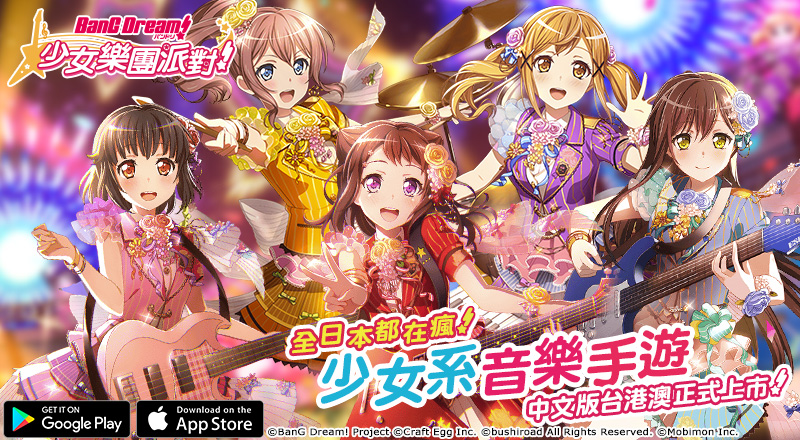 株式会社ブシロードと株式会社Craft Eggの共同制作によるスマートフォン向けゲーム『バンドリ! ガールズバンドパーティ!』は、 本アプリの繁体字版である、 「BanG Dream! 少女樂團派對」を台湾・香港・マカオにて配信開始しました。