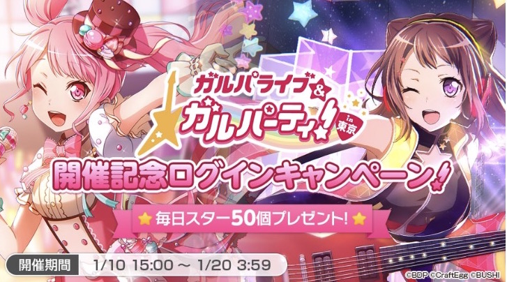 1月10日(水)15時より、「ガルパーティ!in東京開催記念ログインキャンペーン」が実施されます。