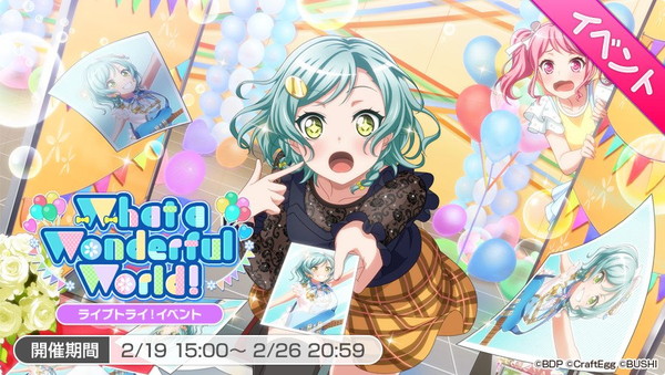 『バンドリ!ガールズバンドパーティ!(ガルパ)』にて、本日2018年2月19日(月)15:00より、イベント「What a Wonderful World!」が開催されました。