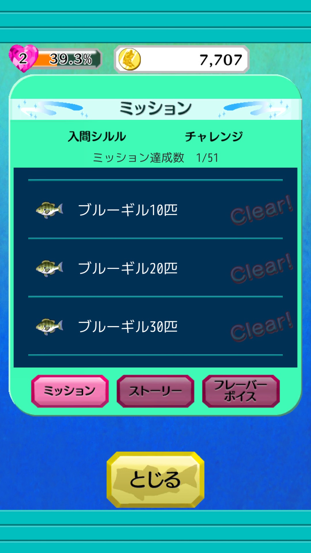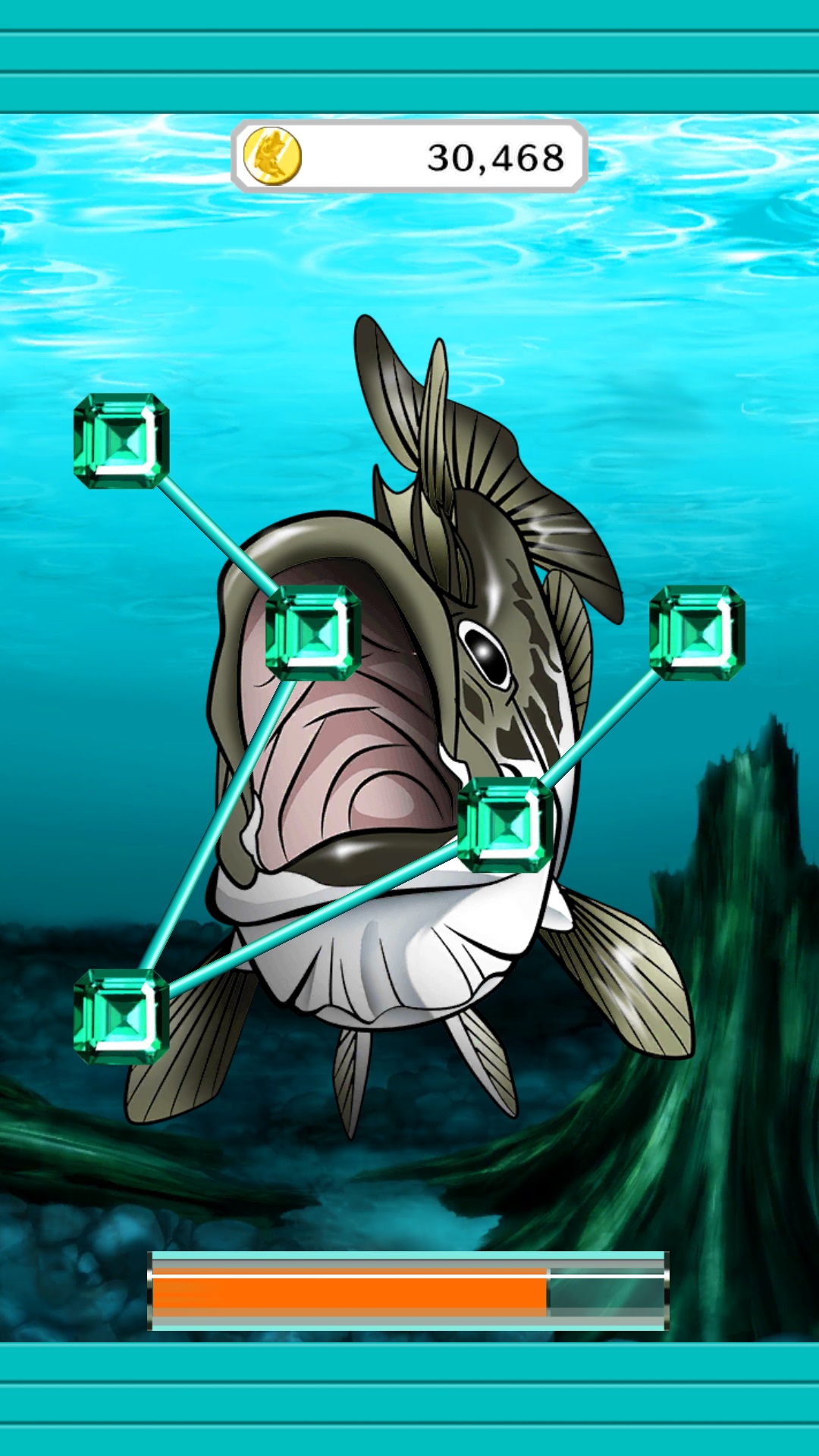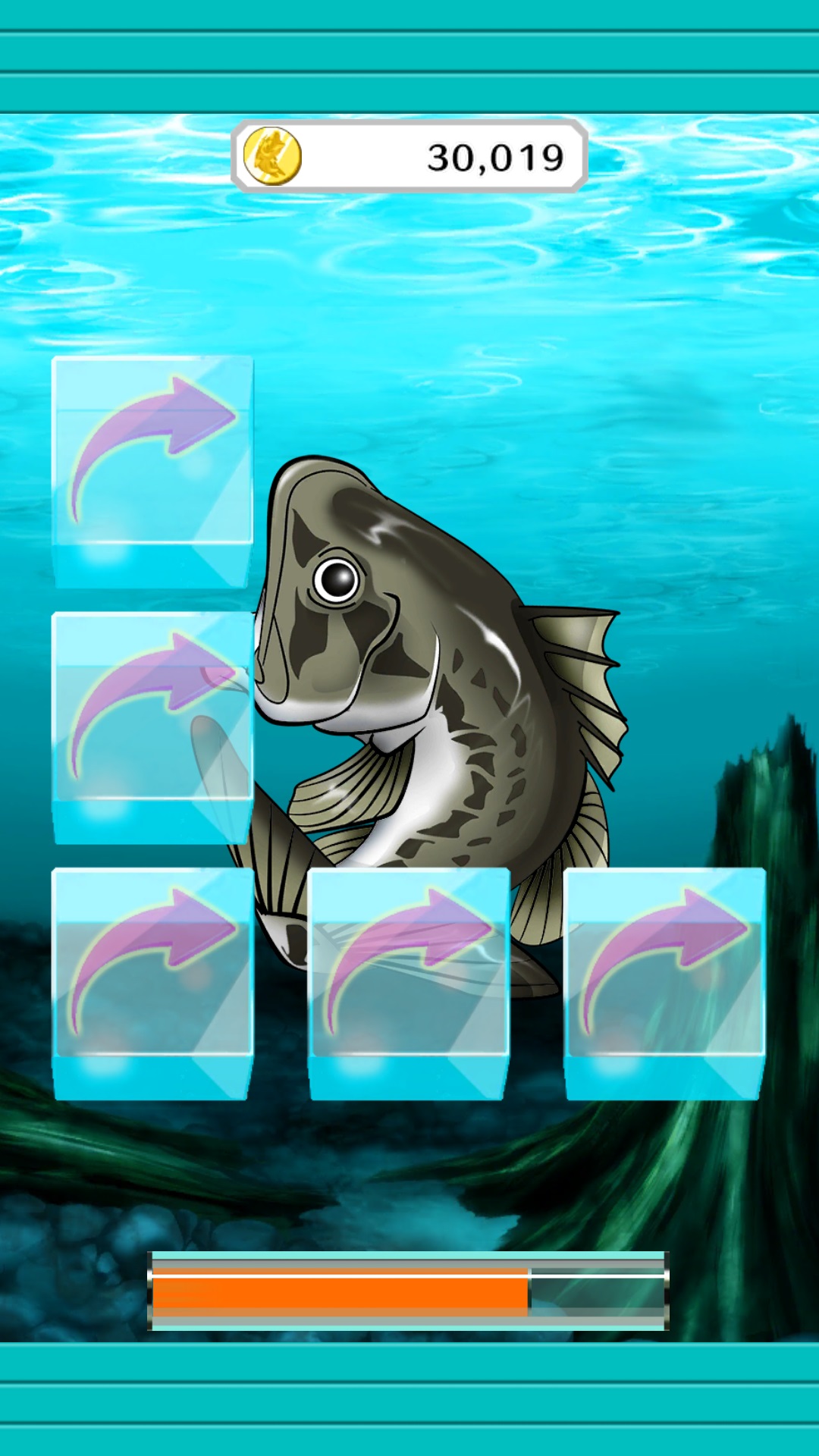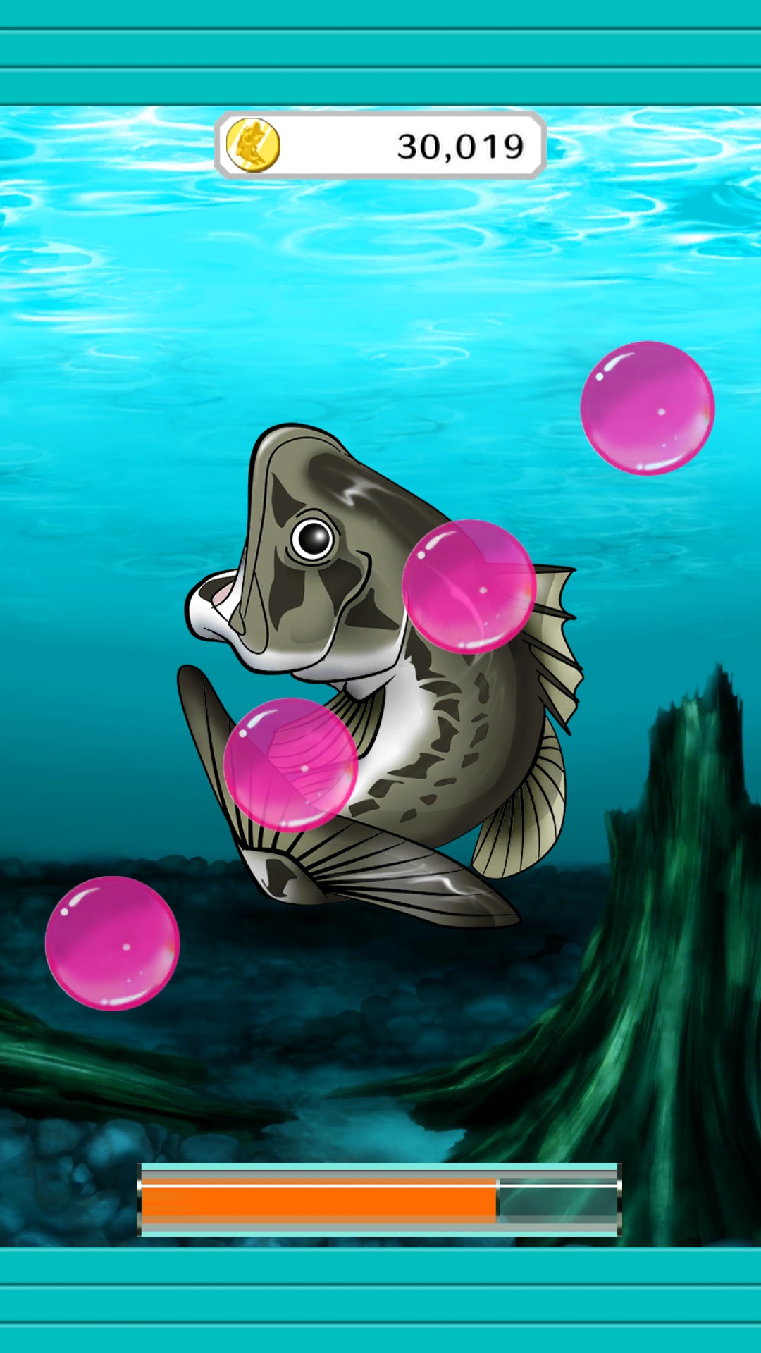 メイン画面でプレイボタンを押すとこのように画面が切り替わります。魚の周りにピンク色の丸いアイコンが表示されていますよね。