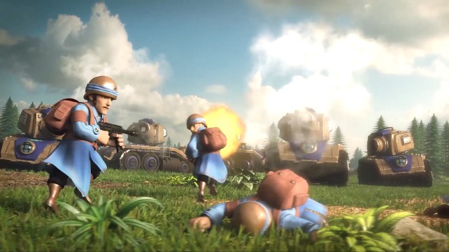 『バトル・ブーム』は、オンライン上でプレイヤー同士が対戦できるリアルタイムストラテジー (RTS)ゲーム。全70通り以上からなる兵士と武器の組み合わせで戦略を立て、相手の基地を攻撃し闘います。
