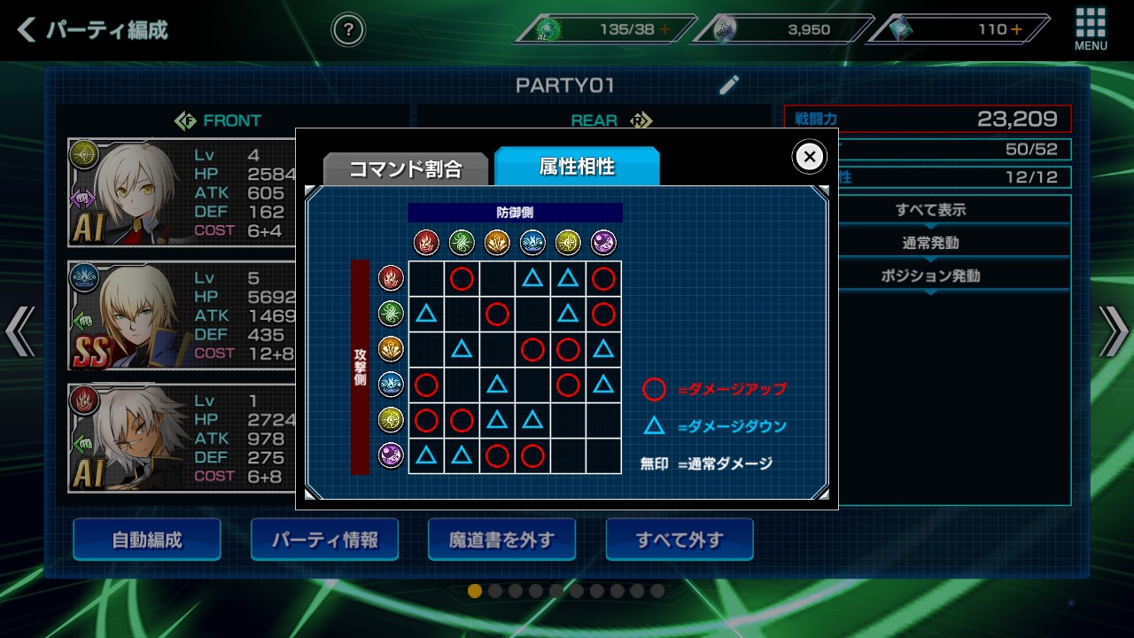 そのほか、キャラクターに1つ装備できる魔道書や、COSTによる編成制限、コマンド割合、属性相性などなど、編成だけで工夫できる要素は盛り沢山!