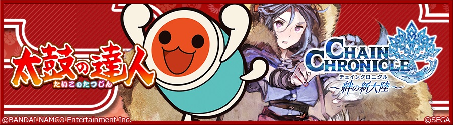 チェインシナリオRPG『チェインクロニクル 〜絆の新大陸〜』と、大人気太鼓型音楽ゲーム「太鼓の達人」のコラボレーションイベントが、10月6日(木)より開催されます。